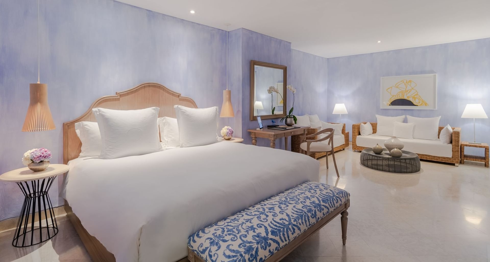 Exclusive and luxurious suites on the top floor of the Republican Building, combining modern decor with historical architectural details. Relax in the living and dining areas overlooking the Caribbean Sea and modern city.